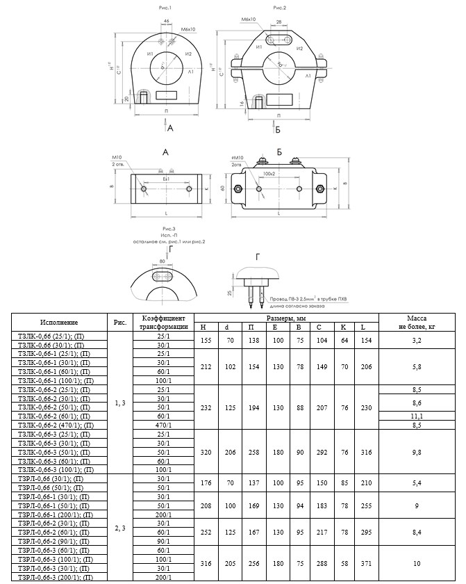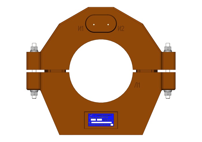Трансформатор тока нулевой последовательности (датчик тока трансформаторный) ТЗРЛ-0,66-2П (90/1) разрезной с габаритом 295х95х252 мм с круглым отверстием диаметром 125 мм для шины и кабеля. Коэффициент трансформации 90/1. С вторичными выводами из провода ПВ-3.