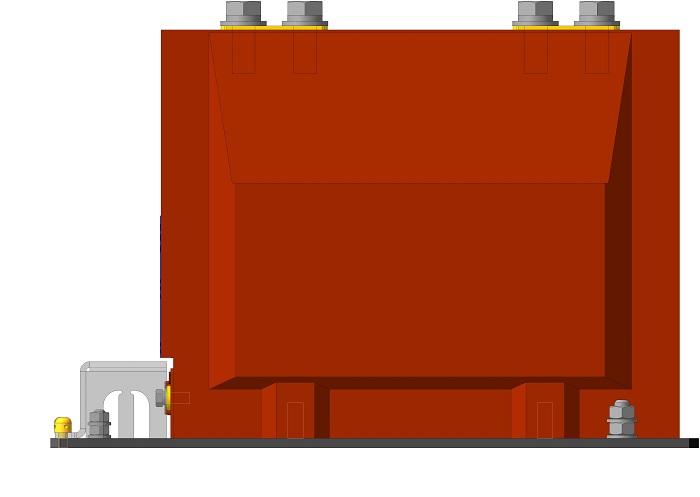 Трансформатор тока (ТОЛ) ТЛК-СТ-10-4 (5А-1500А) в габарите 270х148х222 мм с металлическим основанием и прямоугольными первичными наконечниками с размером 32 мм между отверстиями для крепления подводящих шин. С защитной крышкой вторичных выводов. Наконечники до 1500А.