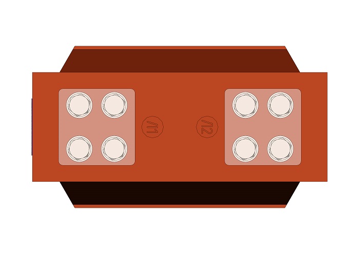 Трансформатор тока (ТОЛ) ТЛК-СТ-10-10 (2000А) в габарите 270х148х224 мм без металлического основания. Гибкие вторичные выводы из провода ПВ-3 расположены вертикально (2 или 3 вторичные обмотки). Наконечники 2000А.