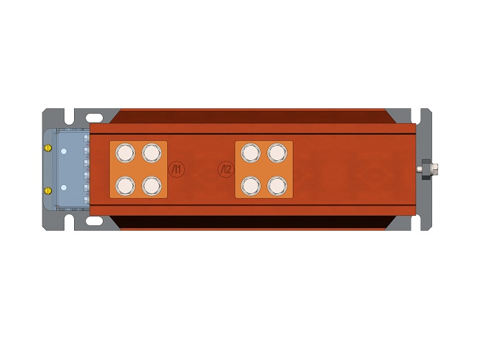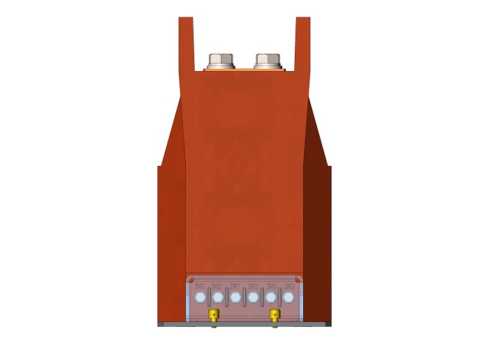 Трансформатор тока (ТОЛ) ТЛК-СТ-10-11М1 (2000А) в габарите 395х148х263 мм с металлическим основанием и прямоугольными первичными наконечниками с размером 32 мм между отверстиями для крепления подводящих шин, с изоляционными барьерами (85 мм) возле первичных наконечников. С защитной крышкой вторичных выводов и увеличенный размер по длине (3 или 4 вторичные обмотки). Наконечники 2000А.