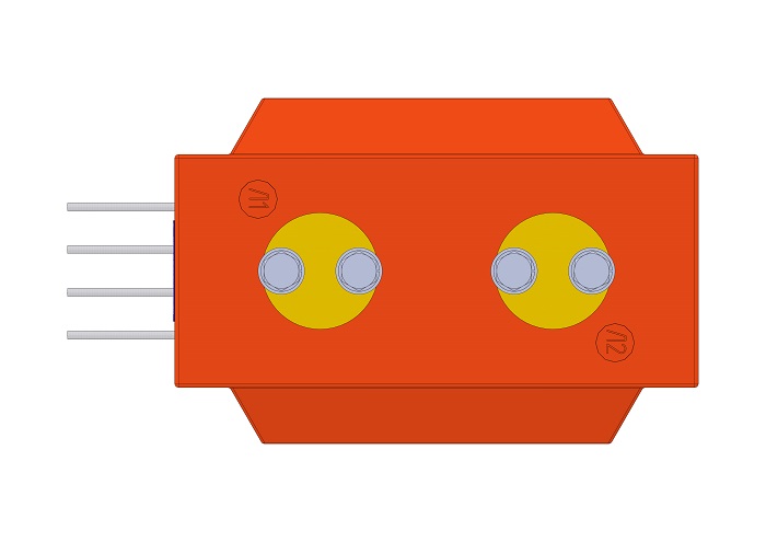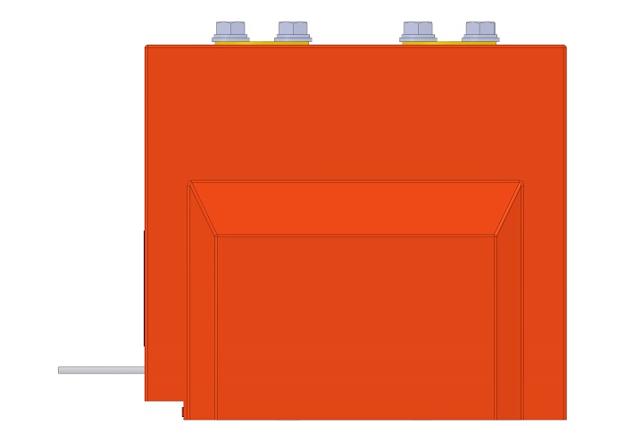 Трансформатор тока (ТОЛ) ТЛК-СТ-10-14 (5А-1500А) в габарите 270х178х242 мм без металлического основания, круглыми первичными наконечниками диаметром 60 мм с размером 40 мм между отверстиями для крепления подводящих шин. Гибкие вторичные выводы из провода ПВ-3 расположены горизонтально (2 или 3 вторичные обмотки). Наконечники до 1500А.