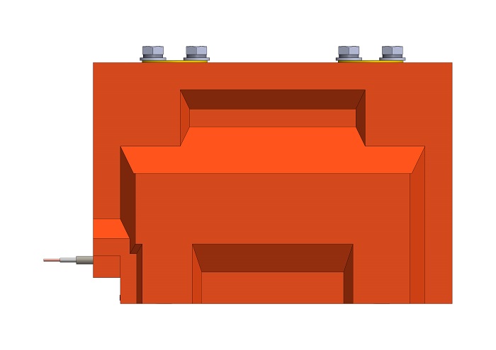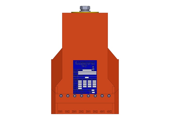 Трансформатор тока (ТОЛ) ТЛК-СТ-10-16.1 (5А-1500А) в габарите габарите 330х148х224 мм без металлического основания, без паза под вторичные выводы и круглыми первичными наконечниками диаметром 60 мм с размером 40 мм между отверстиями для крепления подводящих шин и 140 мм между первичными наконечниками. Без защитной крышки вторичных выводов и увеличенный размер по длине 330 мм (3 или 4 вторичные обмотки). Гибкие вторичные выводы из провода ПВ-3 расположены горизонтально. Наконечники до 1500А.
