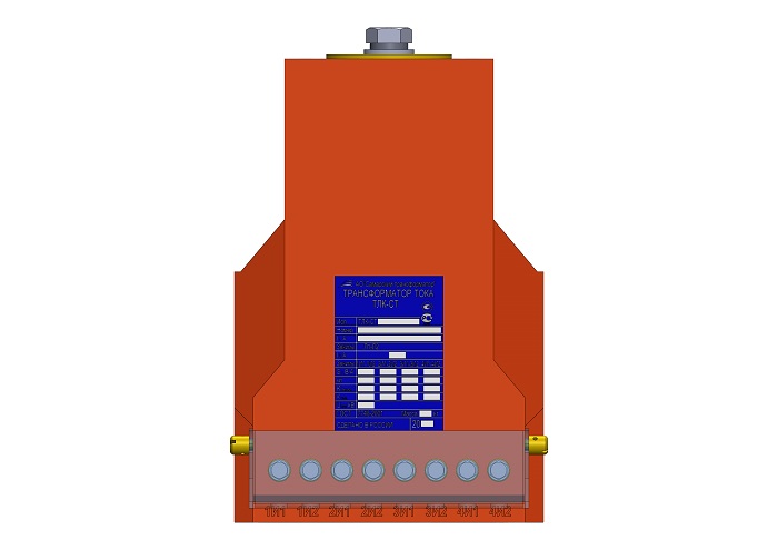 Трансформатор тока (ТОЛ) ТЛК-СТ-10-16(1) (5А-1500А) в габарите габарите 330х148х224 мм без металлического основания, с пазом под вторичные выводы и круглыми первичными наконечниками диаметром 60 мм с размером 40 мм между отверстиями для крепления подводящих шин и 140 мм между первичными наконечниками. С защитной крышкой вторичных выводов и увеличенный размер по длине 330 мм (3 или 4 вторичные обмотки). Наконечники до 1500А.