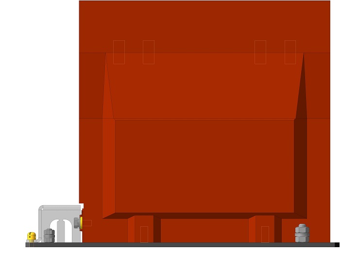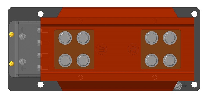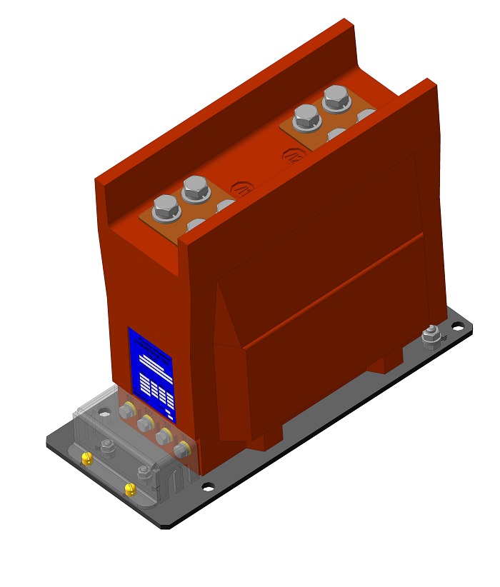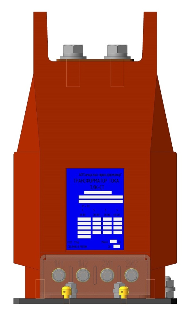 Трансформатор тока (ТОЛ) ТЛК-СТ-10-4М1 (2000А) в габарите 270х148х243 мм с металлическим основанием, с изоляционными барьерами (85 мм между изоляционными барьерами) возле первичных наконечников и прямоугольными первичными наконечниками с размером 32 мм между отверстиями для крепления подводящих шин. С защитной крышкой вторичных выводов. Наконечники до 2000А.