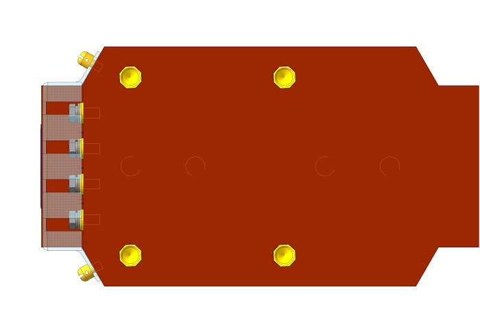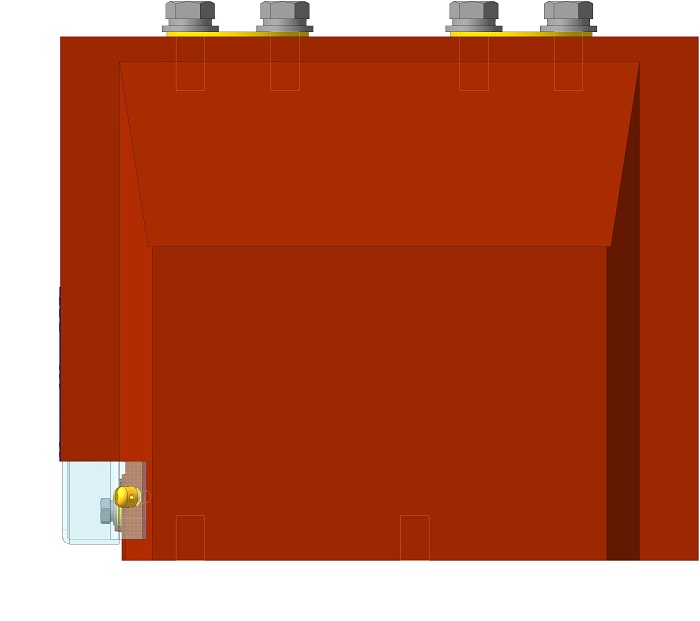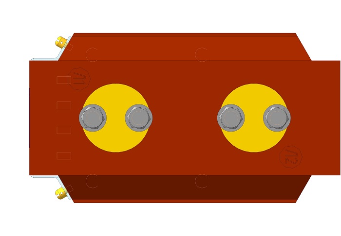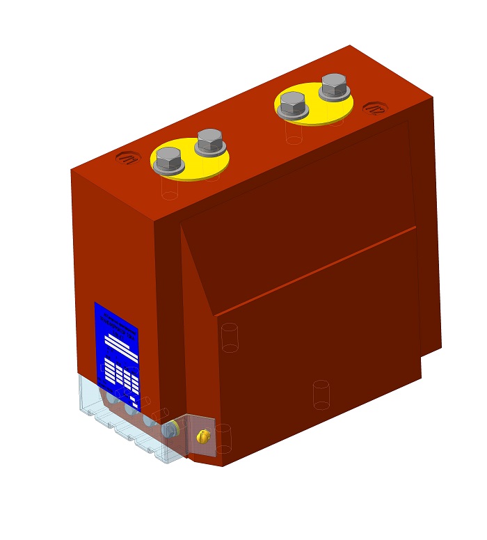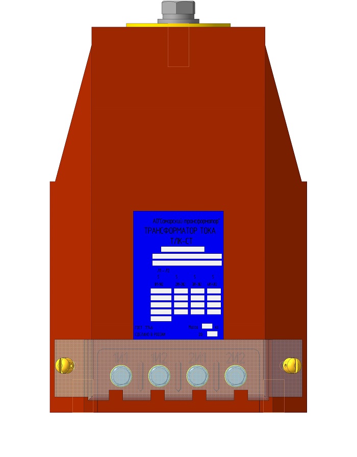 Трансформатор тока (ТОЛ) ТЛК-СТ-10-5(4.1) (5А-1500А) в габарите 270х148х224 мм без металлического основания, с пазом под вторичные выводы и круглыми первичными наконечниками диаметром 60 мм с размером 40 мм между отверстиями для крепления подводящих шин. Обратная полярность по обозначениям первичной обмотки Л1 и Л2. Вторичные выводы расположены горизонтально (2 или 3 вторичные обмотки). С защитной крышки вторичных выводов. Наконечники до 1500А.