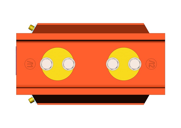 Трансформатор тока (ТОЛ) ТЛК-СТ-10-6М1(1) (5А-1500А) в габарите 270х148х224 мм без металлического основания, с пазом под вторичные выводы, с изоляционными барьерами (85мм) возле первичных наконечников и круглыми первичными наконечниками диаметром 60 мм с размером 40 мм между отверстиями (по ГОСТ) для крепления подводящих шин. Вторичные выводы расположены вертикально (2 или 3 вторичные обмотки). С защитной крышкой вторичных выводов. Наконечники до 1500А.