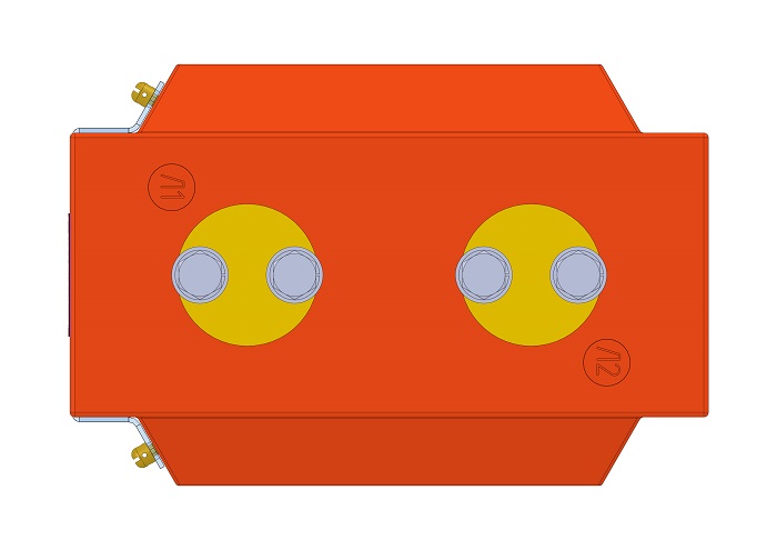 Трансформатор тока (ТОЛ) ТЛК-СТ-10-7(1) (5А-1500А) в габарите 270х178х242 мм без металлического основания, с пазом под вторичные выводы и круглыми первичными наконечниками диаметром 60 мм с размером 40 мм между отверстиями для крепления подводящих шин. Вторичные выводы расположены горизонтально (2 или 3 вторичные обмотки). С защитной крышкой вторичных выводов. Наконечники до 1500А.