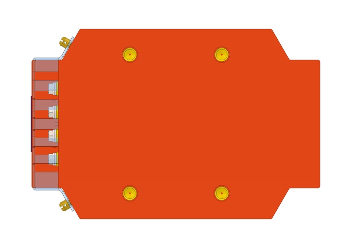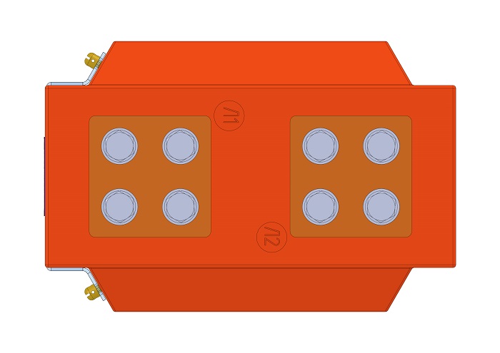 Трансформатор тока (ТОЛ) ТЛК-СТ-10-7.4(1) (2500А) в габарите 270х178х224 мм без металлического основания, с пазом под вторичные выводы. Вторичные выводы расположены горизонтально (2 или 3 вторичные обмотки). С защитной крышкой вторичных выводов. Наконечники 2500А. Отличается размерами под закладные спецгайки крепления трансформатора (130х86 мм).