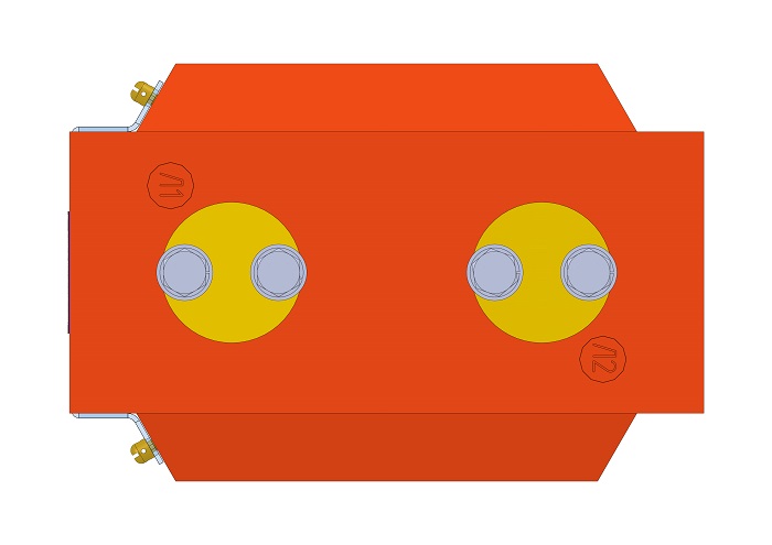 Трансформатор тока (ТОЛ) ТЛК-СТ-10-8.3(1) (5А-1500А) в габарите 270х178х224 мм без металлического основания, с пазом под вторичные выводы и круглыми первичными наконечниками диаметром 60 мм с размером 40 мм между отверстиями для крепления подводящих шин. Вторичные выводы расположены вертикально (2 или 3 вторичные обмотки). С защитной крышкой вторичных выводов. Наконечники до 1500А. Отличается размерами под закладные спецгайки крепления трансформатора (130х86 мм).