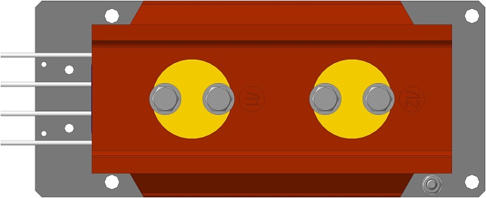 Трансформатор тока (ТОЛ) ТЛК-СТ-10-9М1 (5А-1500А) в габарите 270х148х267 мм с металлическим основанием, с изоляционными барьерами (85 мм) возле первичных наконечников, круглыми первичными наконечниками диаметром 60 мм с размером 40 мм между отверстиями для крепления подводящих шин. Гибкие вторичные выводы из провода ПВ-3 расположены горизонтально (2 или 3 вторичные обмотки). Наконечники до 1500А.