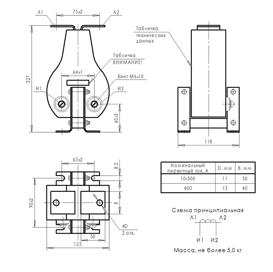 Трансформатор тока (ТОЛ) ТЛК-СТ-6 (5А-300А) с габаритом 123х227х118 мм с одной вторичной обмоткой, без защитной крышки вторичных выводов Первичный ток 10А-400А, вторичный ток 5А. Наконечники до 300А.